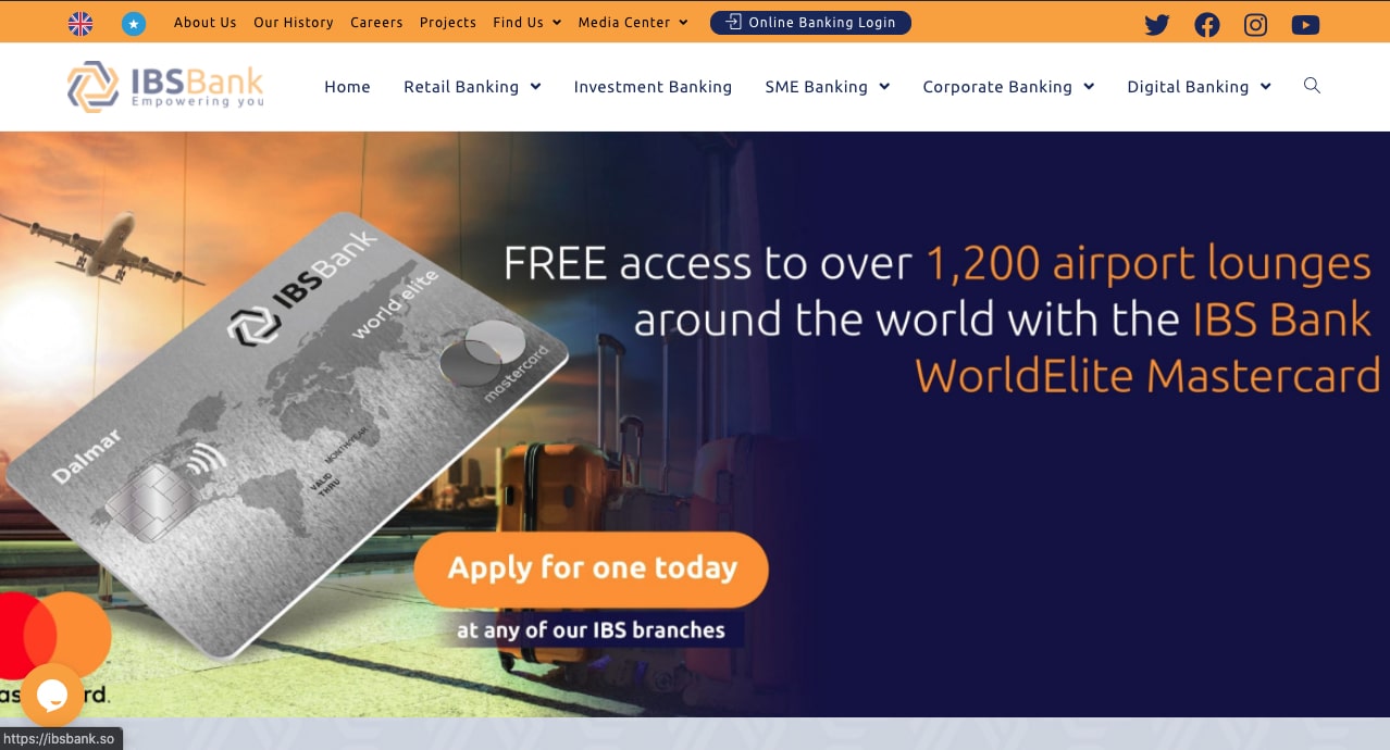 IBS Bank is Somalia’s premier global commercial and Investment bank with its headquarters in Mogadishu, the capital city of Somalia.